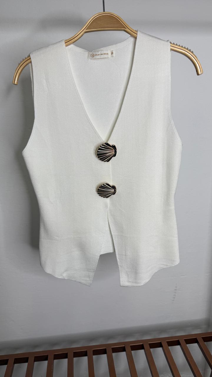 Blusa feminina com modelagem acinturada que valoriza a silhueta e proporciona um toque moderno e sofisticado ao visual. A peça possui decote em V profundo e fechamento frontal com dois botões, a blusa é acompanhada de dois broches. O corte mais alongado nas laterais confere elegância e estilo único, ideal para compor desde looks casuais até produções mais refinadas.