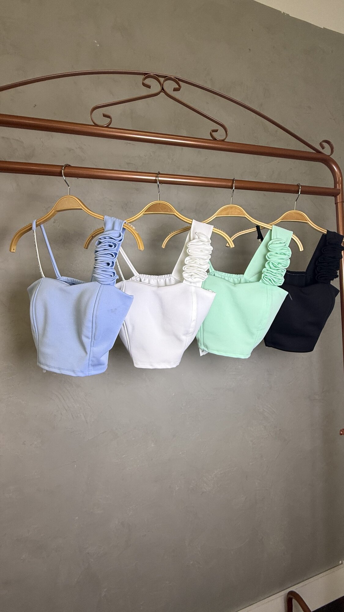 Esse top é a escolha perfeita para composições modernas e cheias de estilo. Com modelagem ajustada ao corpo, ele valoriza a silhueta e garante conforto durante o uso. O destaque fica por conta da alça larga com detalhe franzido, que traz um toque fashionista e sofisticado à peça. Versátil, pode ser usado em looks casuais ou como base para produções mais elaboradas.